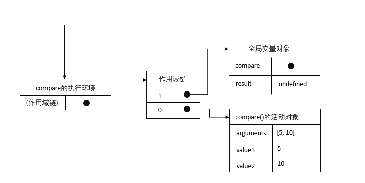 下图展示了包含上述关系的compare()函数执行时的作用域链。